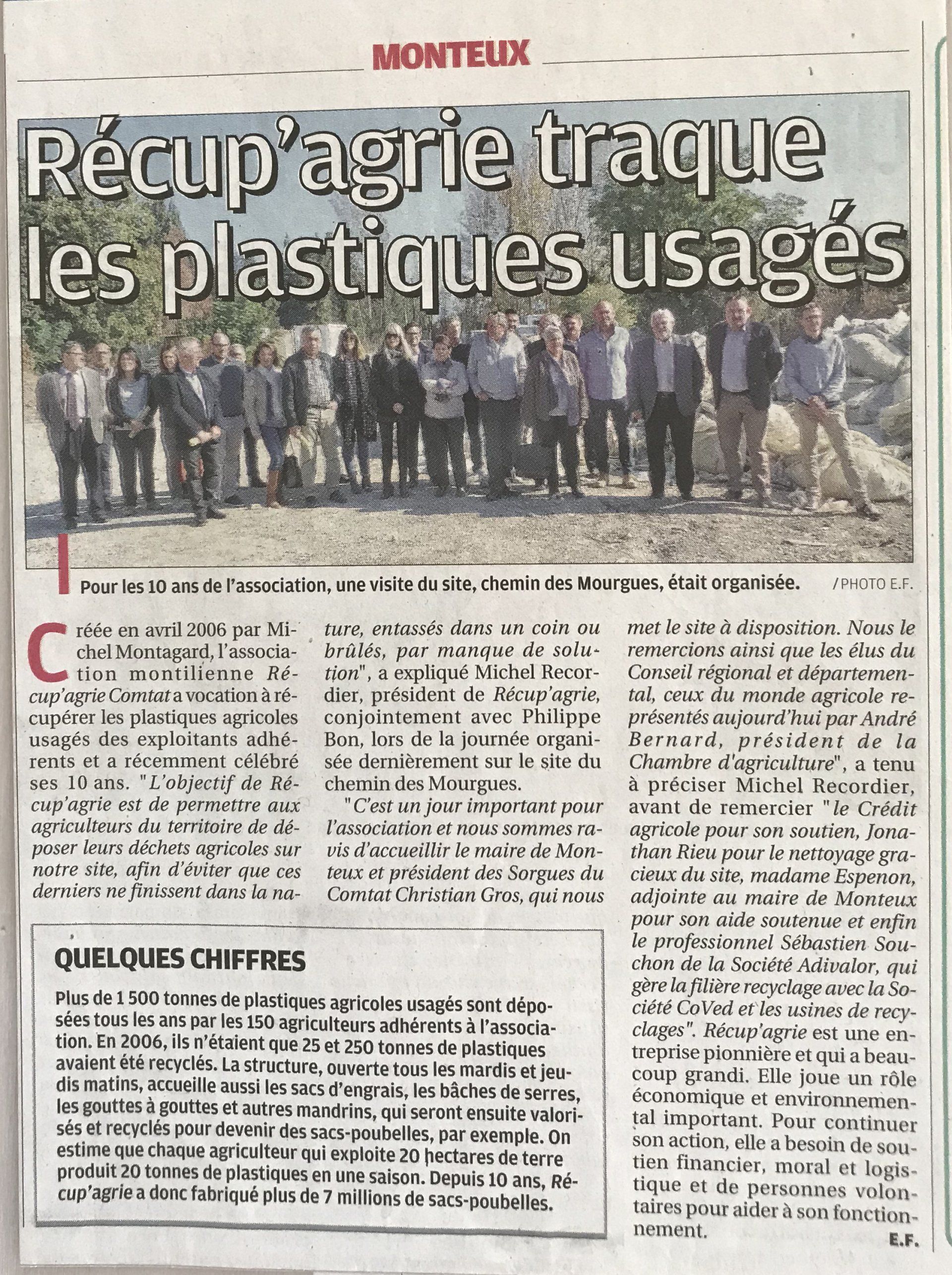 Tarifs des apports de plastique sur le site de RECUPAGRIE
